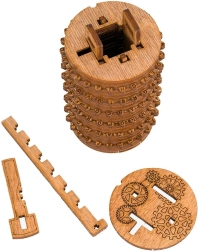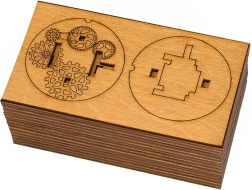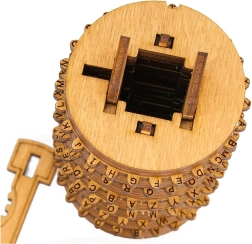 Leseni Cryptex je premišljena mehanska uganka, sestavljena iz 57 natančnih delov iz naravnega brezovega lesa. Vrtljivi obročki s črkami tvorijo kombinacijsko ključavnico, ki se odpre z poravnavo pravilne kode. V notranjosti je tajni predalček (2 × 2 × 8 cm), idealen za majhno presenečenje, sporočilo ali drobno darilo.