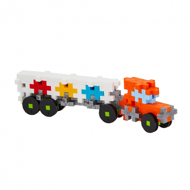 Ta komplet Plus-Plus otrokom ponuja možnost sestaviti lastno tovorno vozilo s pomočjo podrobnih navodil ali pa sprostiti domišljijo in ustvariti unikatne dizajne.
