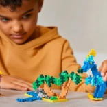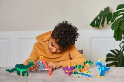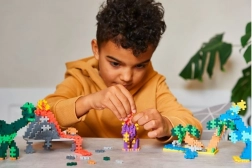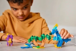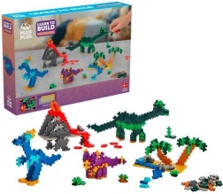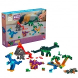 Komplet Plus-Plus vas popelje v svet dinozavrov in ustvarjalnosti. Vsebuje 500 plastičnih koščkov, s pomočjo katerih lahko otroci preprosto sestavljajo enostavne dinozavre po priloženih navodilih ali ustvarjajo lastne konstrukcije, kot so vulkani ali otoki.