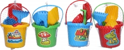 Set ponuja vse potrebno za zabavo v pesku: vedro 10 × 11 cm, grabljice, lopatko in tri simpatične modelčke – ribico, peščenjak in račko. Idealno za igrišče, vrt in počitnice ob morju.