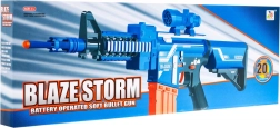 Uživajte v akciji z otroškim blastrjem BLAZE STORM na baterije. Popolnoma električni pogon zagotavlja tekoče delovanje in stabilno zmogljivost, pri čemer vsak pritisk na sprožilec izstreli eno puščico. Dolga cev z dvema stabilizacijskima valjčkoma pomaga ohranjati smer leta, odstranljiv taktični ciljnik pa olajša merjenje.