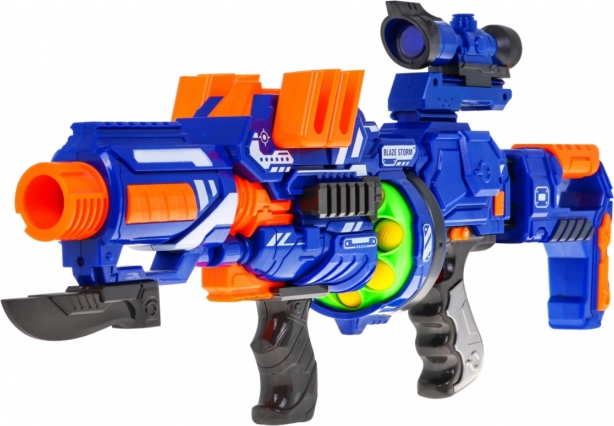 Iščete akcijsko zabavo za vrt ali notranje prostore? BLAZE STORM v sodobni modro–oranžni izvedbi je lahek, trpežen in pripravljen na dolge dvoboje s prijatelji. Popolnoma samodejni baterijski pogon zagotavlja tekoče rafale, medtem ko bobnasti nabojnik poskrbi za hitro polnjenje in zanesljivo delovanje.