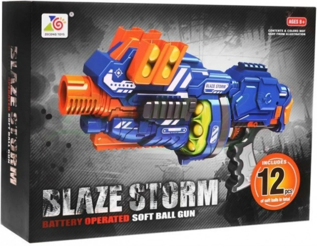 Zabavna in varna akcijska igra za otroke od 8 let naprej! Polavtomatska puška Blaze Storm izstreljuje mehke penaste kroglice z dosegom do 10 m, ponuja polavtomatski električni način, bobenski nabojnik za 8 nabojev in dodatne nosilce za rezervne nabojnike. Priloženih je 12 kosov penastih izstrelkov za takojšnjo igro.