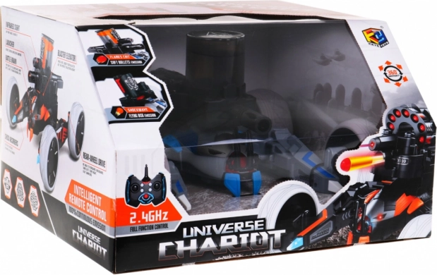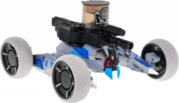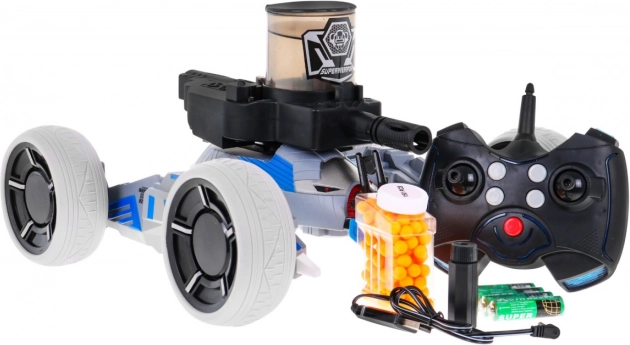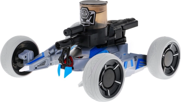 Doživite akcijsko zabavo s tem terenskim RC crawlerjem s streljanjem za otroke od 5 let. Vozilo je upravljano na 2,4 GHz, vozi v vse smeri, ima 360° vrtljivo kupolo, laserski merilnik za natančno merjenje in nabojnik do 50 kroglic. Zahvaljujoč velikim gumijastim kolesom in amortizaciji se zlahka spopade z neravnim terenom. Ne manjkajo svetlobni in zvočni efekti ter senzor zadetkov – po treh zadetkih se vozilo »izklopi« in bitka se lahko začne znova.