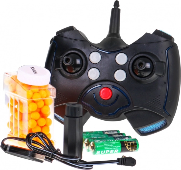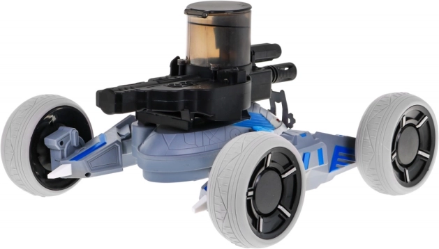 Velika gumijasta kolesa z nedrsečim profilom in funkcionalni blažilniki zagotavljajo gladko vožnjo v notranjih in zunanjih prostorih. Vgrajen senzorski sistem zadetkov zazna zadetke – po tretjem zadetku se vozilo izklopi in ga je treba znova zagnati, kar igram dodaja napetost in poštena pravila.