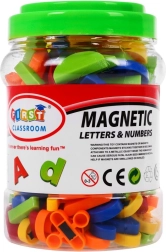 Odkrijte kreativno učenje skozi igro. Ta bogat set v priročnem plastičnem lončku z ročajem ponuja vse za prvi stik z abecedo, številkami in preprostimi računi. Zahvaljujoč močnim magnetom se delčki oprimejo večine kovinskih površin in so odlični za magnetne table.