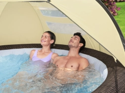 Nadstrešnica zagotavlja zaščito pred UV sevanjem in vetrom, kar vam prinaša prijetno izkušnjo kopanja v vsakem vremenu.