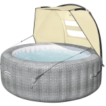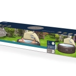 Ta nadstrešnica za masažne kadi vam zagotavlja odlično zaščito in zasebnost med vašim sproščujočim časom na vrtu. S prezračevalnimi okni, ki zagotavljajo prost pretok zraka in enostavno sestavljanje, je idealen dodatek za vse vrste masažnih kadi znamke Bestway, razen modelov St. Lucia in Vancouver.