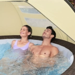Prednosti te nadstrešnice vam omogočajo, da v celoti uživate v sproščanju v masažni kadi, z zaščito pred naravnimi vplivi.