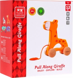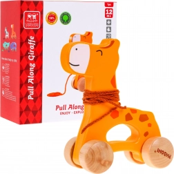 Lesena kolesca in preprosta vrvica omogočata otrokom, da žirafo zlahka vlečejo po različnih površinah.