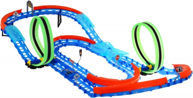 | | Velika proga z dvema zankama je primerna za otroke od 3 let dalje. Igrača je napajana z baterijo tipa 1 x 3,7 V – avtomobilček (priloženo v paketu) in baterijami tipa 2 x AAA – daljinski upravljalnik (niso priložene). Proga je fluorescenčna, v temi sveti. Avtomobilček ima LED osvetlitev, vožnja ustvarja osupljive učinke. Uživajte v zabavi. | |