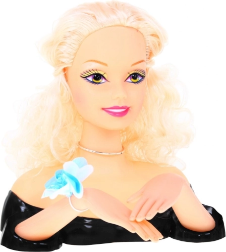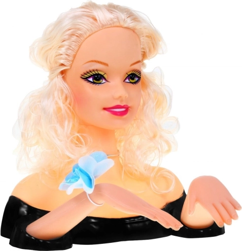 Odkrijte ustvarjalno zabavo z glavo punčke za česanje in ličenje za otroke od 3 let. Zahvaljujoč realističnim blond lasem in bogatemu kompletu dodatkov si otroci urijo fino motoriko, domišljijo in smisel za stil. Priloženi so praktični pripomočki, kot so glavnik, gumice in sponke za ustvarjanje različnih pričesk.