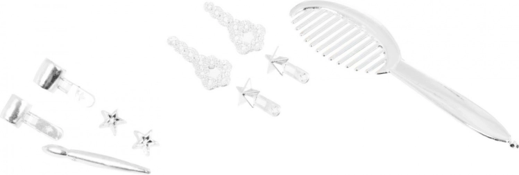 V paketu so glavnik, okrasna elastika in sponke – vse za lepe in obstojne pričeske vsak dan.