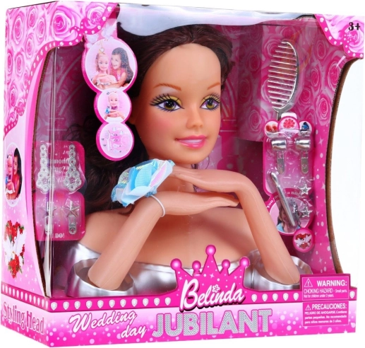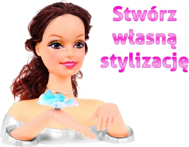 Odkrijte zabavo s stilistično glavo punčke z dolgimi rjavimi lasmi. Otroci lahko vadijo česanje, pletenje in okraševanje las s priloženimi dodatki. Igra spodbuja kreativnost, fino motoriko in domišljijo.