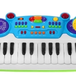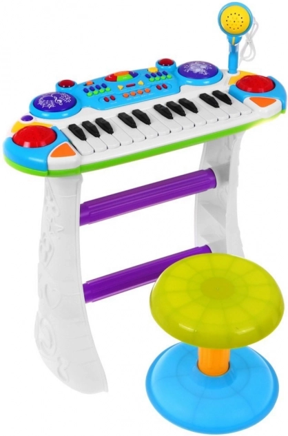 Moder glasbeni set je odlična izbira za male ljubitelje glasbe. Vključuje klaviaturo z dvema oktavama, mikrofon in živahne luči, kar otrokom omogoča eksperimentiranje z zvoki in svetlobo med igro.