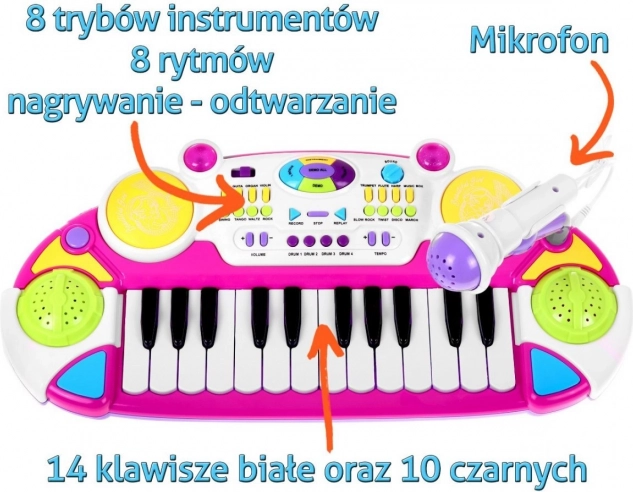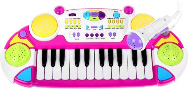 Ta rožnat komplet klaviatura z bobni in mikrofonom je idealno darilo za otroke od 3 let. Vsebuje dve oktavi, luči in zvoke, kar otrokom omogoča nepozabno glasbeno in zabavno izkušnjo.