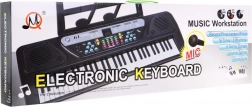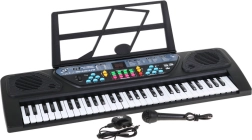 V paketu so mikrofon, stojalo za note in navodila za uporabo. Mere klaviatura so približno 70 cm x 23 cm x 7 cm, kar omogoča udobno postavitev na mizo. Otroci lahko začnejo svoje glasbeno popotovanje s tem vsestranskim instrumentom.