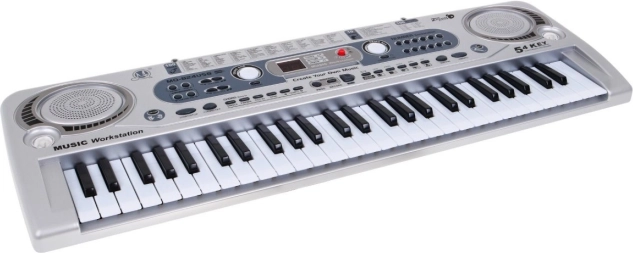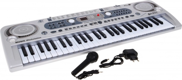 Odkrijte zabavno in izobraževalno glasbilo za otroke 5+. Ta srebrna elektronska klaviatura ponuja 54 tipk, USB vhod, snemanje in vgrajena zvočnika. Z 100 toni, 100 ritmi, 10 demo skladbami ter priloženim mikrofonom je idealna za prve korake v svet glasbe.