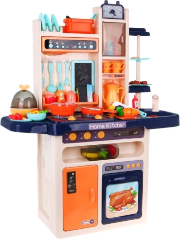 Ta stilska modra kuhinjica spremeni igro kuhanja v realistično doživetje. Otroci bodo vzljubili tekočo vodo iz funkcionalne pipe, osvetljene gorilnike z učinki pečenja in kuhanja ter en gorilnik z nežno paro. Ne manjkajo odpirajoča se pečica in hladilnik, napa z lučko in glasbeni (avdio) panel, ura s premičnimi kazalci ter praktične poličke za posodo.