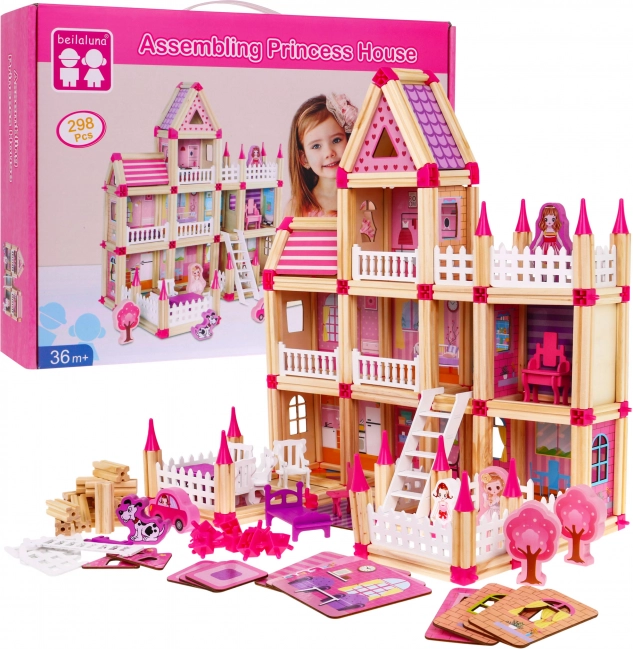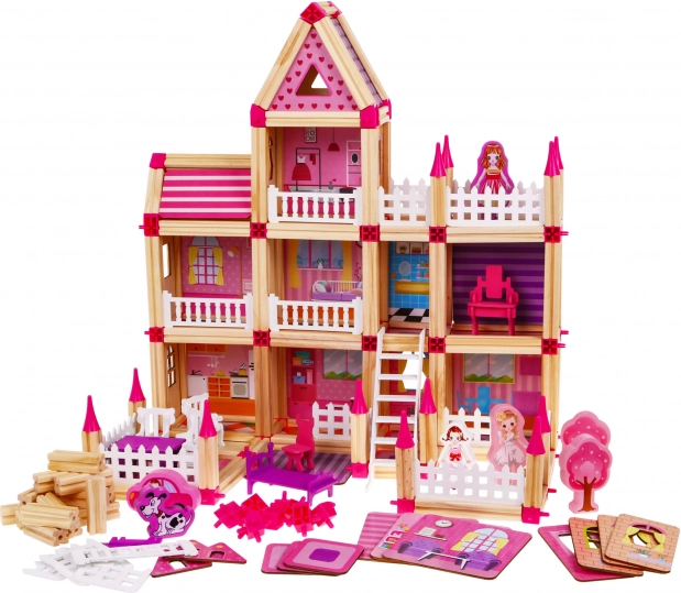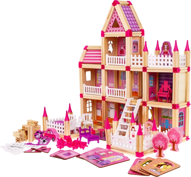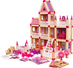 Ta leseni gradbeni set je idealen za male graditelje od 3 let. Set vsebuje 298 kosov, ki omogočajo sestavljanje različnih konstrukcij in spodbujajo kreativno igro. Otroci lahko uporabijo delčke z motivi dreves, likov princesk ali avtomobilčkov ter tako ustvarjajo lastne zgodbe.