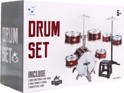 | Velik dvodelni komplet bobnov je glasbena igrača, namenjena otrokom od petega leta starosti. Komplet vsebuje 6 bobnov, 2 činela, 2 palčki in udoben stolček. Igranje na bobne uči otroka zbranosti in koncentracije. Zmanjšuje stres, izboljšuje razpoloženje ter uri koordinacijo rok in nog. | |||