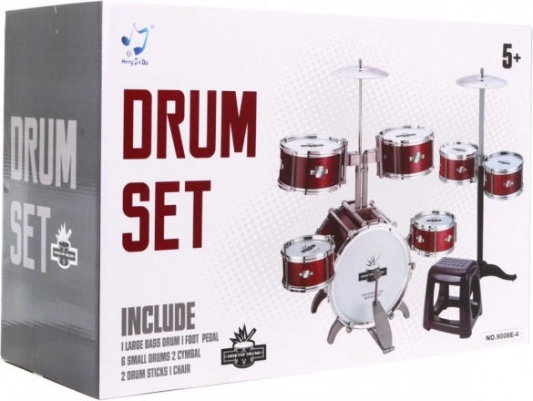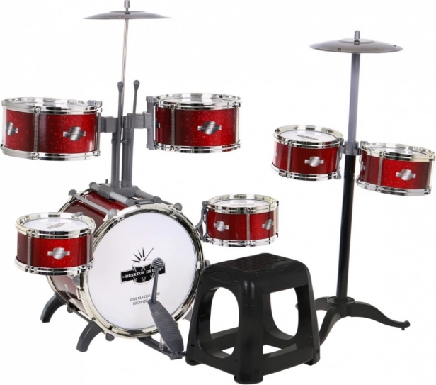 Rdeči bobni s 7 bobni + stolček + 2 čineli + 2 palčki - 12 delov