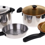 | - indukcijska kuhalna plošča, - ekonom lonec, - lonec s pokrovko, - ponev, - vok s pokrovko, - zajemalka, - cedilo, - 2 x lopatica, - podstavek za lonec, - piščanec, - zrezek, - zelje, - piščančje bedro, - koruzni storž, - gobe, - česen, - zeleni poper, - korenje, - riba, - ocvrto jajce, - solnica, - popernica, - arašidovo maslo, - sardine, - paradižnikova omaka, - med. | ||