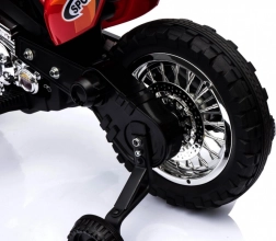 Ta otroški električni motor je idealna izbira za prve vozne izkušnje. Robustna plastična konstrukcija z gumijastim tekalnim slojem pnevmatik zagotavlja stabilnost in tih tek, medtem ko pomožna koleščka podpirata ravnotežje in samozavest začetnikov. Sprednja LED luč povečuje vidljivost in dodaja privlačen videz.