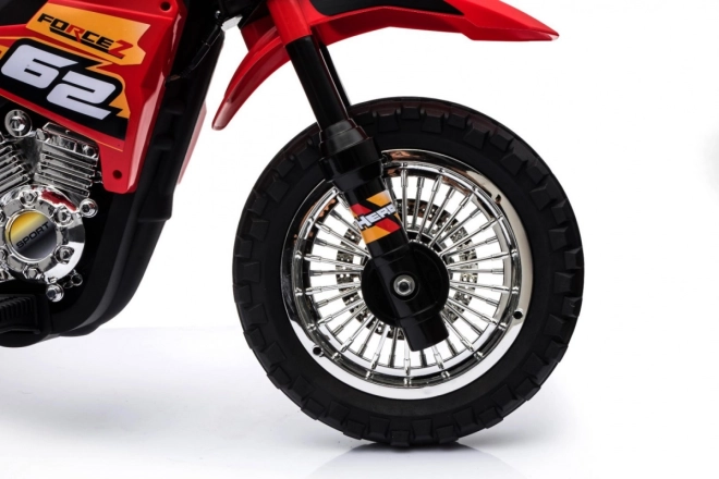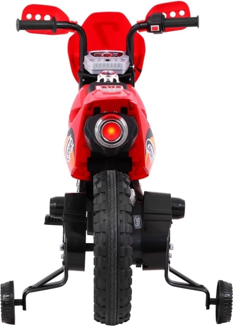 Stajliš otroški kros motor na akumulator v živo rdeči barvi ponuja malim voznikom varno zabavo doma in na prostem. Opremljen je z 6V motorjem RS-390, gumijastim tekalnim slojem pnevmatik za boljši oprijem, sprednjo LED lučjo ter stabilizacijskimi koleščki za zanesljivost pri prvih vožnjah. Intuitiven plin v ročaju in avdio panel z zvoki in melodijami poskrbita za realističen doživljaj.