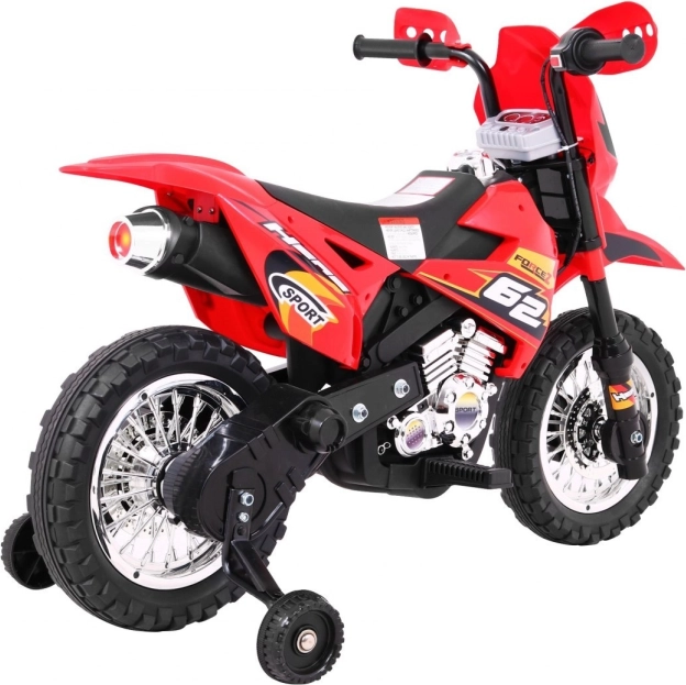 Otroški električni kros motor 6V – rdeč s stabilizacijskimi koleščki in LED lučmi