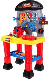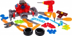 Komplet vsebuje različna orodja, kot so kladivo, izvijač, žage in ključi. Ta orodja razvijajo spretnosti vaših otrok in spodbujajo njihovo domišljijo.