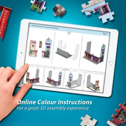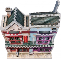 Odkrijte vzdušje Prečne ulice s precizno repliko dveh ikoničnih trgovin. Model iz kakovostnega kartona z debelo penasto plastjo (PE) izstopa z realističnimi teksturami in barvitimi izložbami – ne manjka niti slovita metla Nimbus 2001. Zahvaljujoč pametno zasnovanim kosom model trdno drži skupaj brez lepila in orodja.