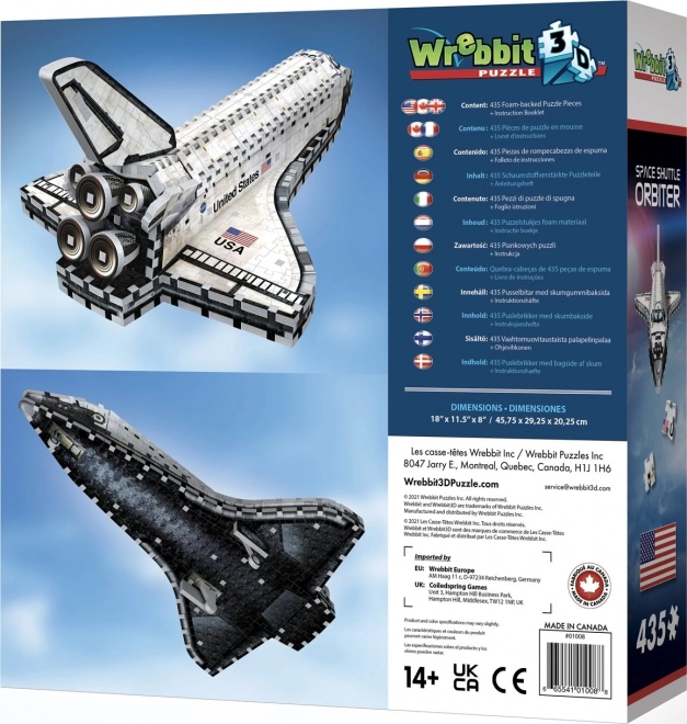 Odkrijte veselje do sestavljanja tridimenzionalnega modela raketoplana, ki zvesto posnema pravi Orbiter – edini del raketoplana, ki doseže tirnico in varno pristane nazaj na Zemlji. 3D puzzle WREBBIT ponujajo uravnotežen izziv in zabavo zahvaljujoč neoštevilčenim koščkom in jasnim referenčnim slikam.