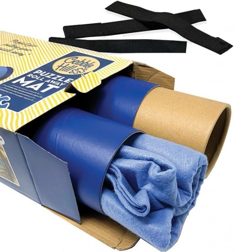 Ni več zasedenih miz in skrbi zaradi raztresenih koščkov. Vrtljiva podloga COBBLE HILL je odličen pomočnik za vsakega ljubitelja sestavljanja. Filc površina v modri barvi drži koščke na mestu, kartonski tulec s trakovi pa poskrbi, da vse udobno zvijete ter varno shranite ali prepeljete.