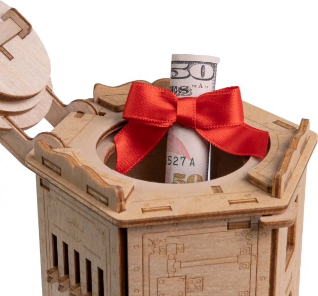 Fort Knox Pro ni le sestavljanka, ampak tudi unikatna rešitev za shranjevanje. Ta lesena sestavljanka je idealna za vse, ki cenijo kombinacijo umetnosti in logičnega razmišljanja. Vsebuje 73 precizno izrezanih kosov, ki predstavljajo zahteven izziv za vse starostne skupine. Uporabite priložen vodič in QR kodo za morebitne namige.