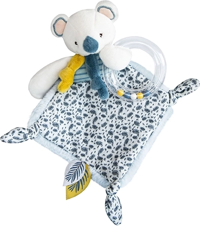 Ta čudovit darilni komplet vsebuje plišasto koalo Yoca, ki je idealen spremljevalec za dojenčka od rojstva dalje. Zaradi svojega nežnega materiala daje občutek varnosti in udobja. Ropotuljica z biserčki v notranjosti obroča zagotavlja stimulacijo in zabavo za najmlajše.