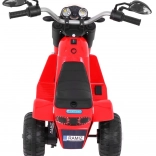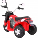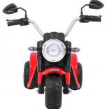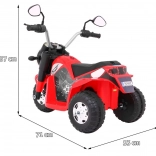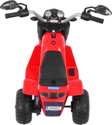 Zmogel motor 6 V z gumbnim zagonom in zvočnim efektom motorja, sprednja LED luč ter črn sedež iz eko usnja naredijo to vozilo privlačno in varno za otroke. Upravljanje je intuitivno – vožnja naprej/nazaj, široka kolesa in dobra prevoznost tudi po manj ravnih površinah.