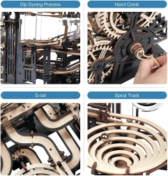 ROKR Marmorno Nočno Mesto je osupljiv 3D sestavljiv model kroglične piste, ki združuje zabavo in izobraževanje. Ta model je sestavljen iz 294 natančno izrezanih kosov, ki tvorijo zapleteno pot s številnimi ovirami in mehaniko, ki se poganja ročno z obračanjem kljuke. Del paketa je popoln priročnik, ki vas vodi skozi postopek sestavljanja.