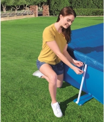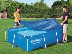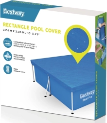 Pokrivalo je oblikovano tako, da zaščiti vaš pravokotni bazen z okvirjem dimenzij 300 x 201 cm. Posebne odtočne luknje na pokrivalu preprečujejo nabiranje vode. S integriranimi trakovi enostavno in varno pritrdite pokrivalo na konstrukcijo bazena.