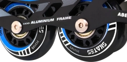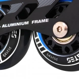 Varen oprijem zagotavlja trojno zapenjanje: vezalko, pašček na ježka in zaponko z varovalom proti nenamernemu odpiranju. Aluminijasto ogrodje pri inline/trekovih rolerjih povečuje togost in življenjsko dobo, PU kolesca 64×24 mm s trdoto 85A v kombinaciji z ležaji ABEC–7 poskrbijo za gladko vožnjo. Pri zimskih radostih boste cenili nerjaveče rezila ledenih drsalk in priročne zaščite rezil.