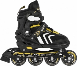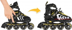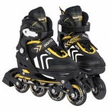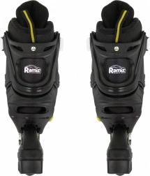 Aluminijasta podvozna letvica in kolesa PU 64×24 mm s trdoto 85A v kombinaciji z ležaji ABEC-7 zagotavljajo gladek in zanesljiv drs. Na ledu boste cenili nerjaveči rezili, ki sta trpežni in enostavni za vzdrževanje. Desni roler je opremljen z zavoro za varnejše ustavljanje.