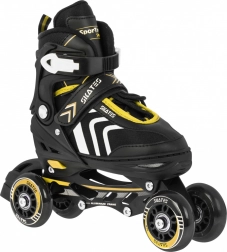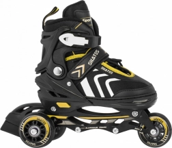 Univerzalni otroški komplet 4-v-1 za zabavo skozi vse leto: inline, ledene in več konfiguracij koles v enem. Zahvaljujoč nastavljivemu obsegu 29–33, aluminijastemu okvirju, kolesom iz PU 64 mm 85A in ležajem ABEC-7 ponuja gladko vožnjo, varno zapenjanje in udobje z mehkim vložkom EVA ter prezračevanjem.