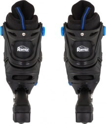 Komplet 4v1 raste skupaj z otrokom in omogoča enostavno menjavo med inline in ledeno različico. Varen tritočkovni sistem zapenjanja (vezalke, trak na ježka, zaponka z varovanjem) drži stopalo stabilno, medtem ko poltrda školjka ščiti gleženj. Desni roler je opremljen z zavoro za zanesljivejše ustavljanje.