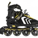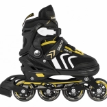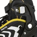 Čevlju je dodano učinkovito zračenje, polprepustna membrana in profiliran vložek z mehko peno EVA, prevlečeno z žametnim materialom Velvet. Trojno zapiranje (vezalke, pašček na ježka, zaponka z varovalom) drži stopalo stabilno. Aluminijast okvir s PU kolesi 70×24 mm, trdota 85A in ležaji ABEC-7 omogočajo tekočo in hitro vožnjo, desna drsalka je opremljena z zavoro.