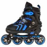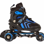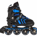 Univerzalni komplet 4‑v‑1 za otroke združuje inline drsalke, ledne drsalke in quad različico v enem. Zahvaljujoč 5‑stopenjskemu nastavljanju velikosti (39–43), aluminijastemu okvirju, PU koleščkom 72 mm / 85A in ležajem ABEC‑7 ponuja gladko vožnjo in dolgo življenjsko dobo. Za udobje skrbi polmehki čevelj z ventilacijo, profiliran vložek iz EVA ter trojno zapenjanje za varno prileganje stopala.