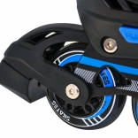Aluminijasto podvozje, ležaji ABEC‑7 in poliuretanska koleščka 72×24 mm s trdoto 85A omogočajo gladko in hitro drsenje ter zanesljivo vodljivost. Trojno zapenjanje – vezalke, ježek in zaponka z varovalom – drži stopalo trdno na mestu. Desna drsalka je opremljena z zavoro za varno ustavljanje.