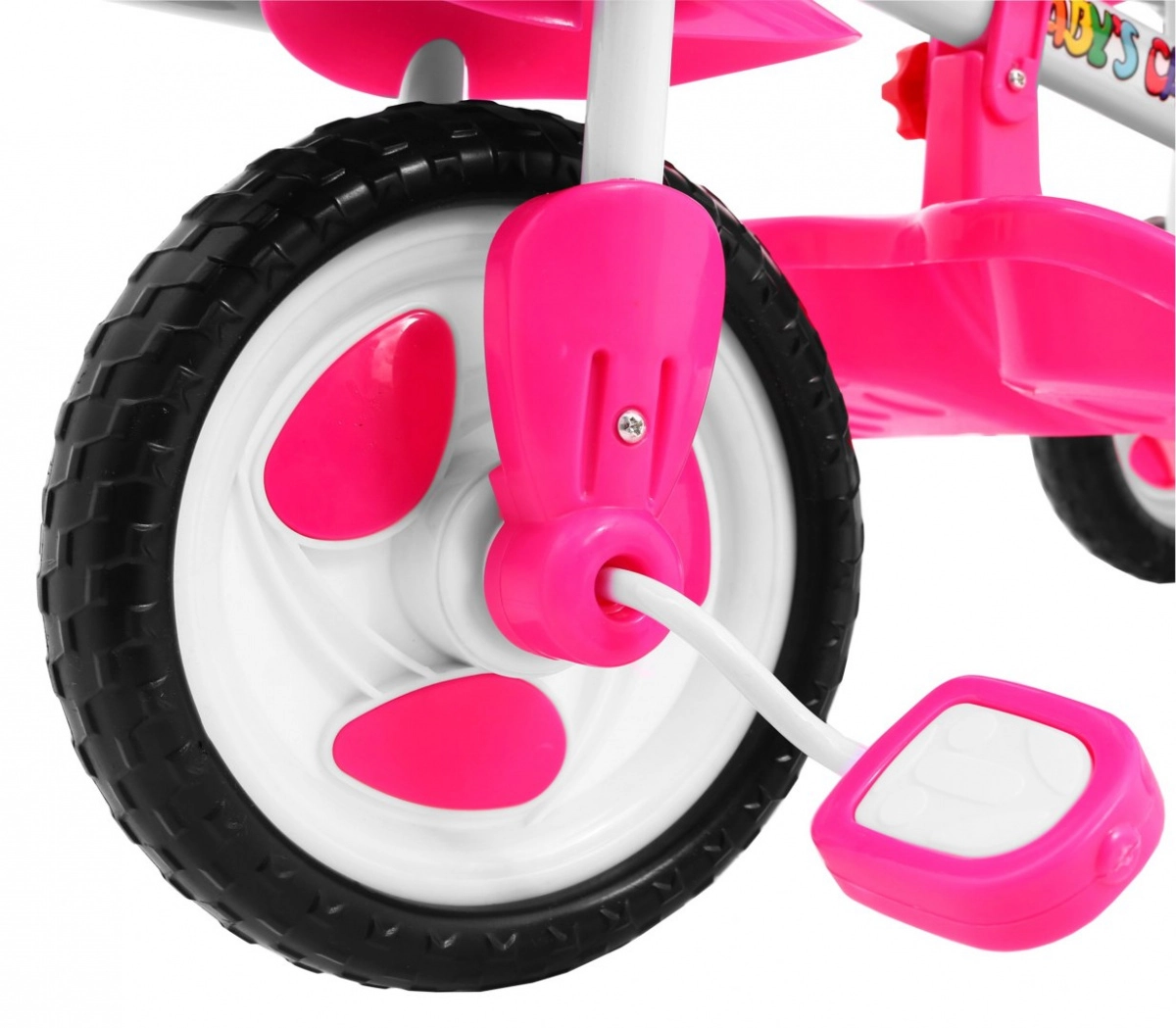 Ta stabilni otroški tricikel z jeklenim okvirjem raste z vašim otrokom. Zahvaljujoč 3-stopenjskemu starševskemu ročaju, povezanemu s krmilom, zlahka popravljate smer vožnje, medtem ko razpeta varnostna ograjica in nastavljiva razdalja sedeža do pedalov zagotovita pravilno in varno sedenje malih voznikov.