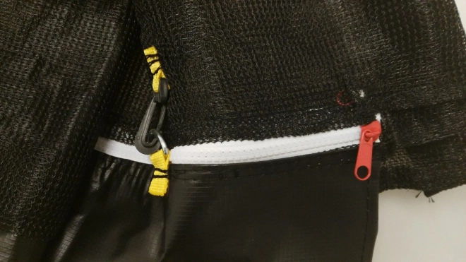 Zahvaljujoč barvni obojestranski zadrgi je vstop maksimalno pregleden in varen, medtem ko tuneli za stebre in kaveljčki za pritrditev zagotavljajo čvrsto in stabilno napetost mreže. Zaščitni rokavi na stebrih iz obstojnega PVC dodatno ščitijo konstrukcijo pred vremenskimi vplivi.