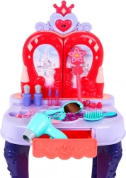 Ta barvita otroška toaletna mizica bo razveselila vsako malo razvajenko. Zahvaljujoč čarobni paličici se ob približanju vratca samodejno odprejo, zaigra melodija in na ogledalu se pojavijo čarobne podobe princez. Vratca lahko upravljate tudi zgolj z približanjem roke. Za zabavo poskrbi tudi otroški fen na baterije, ki resnično piha in oddaja zvoke.