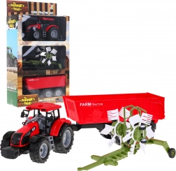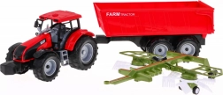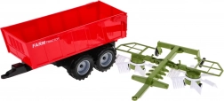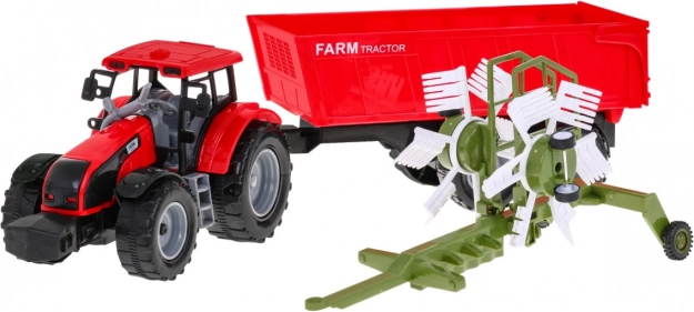 Ta podrobno izdelan traktor je enostaven za upravljanje – zahvaljujoč pogonu na trenje ga le potegnete in spustite. Priloženi priklopnik ima ročni nagib za nakladanje in razkladanje, medtem ko zeleni obračalnik sena razširi igro z dodatnimi kmetijskimi dejavnostmi. Celoten komplet je izdelan iz trpežne plastike in po videzu spominja na pravo kmetijsko mehanizacijo.